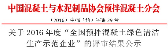 2016年度“全國預(yù)拌混凝土綠色清潔生產(chǎn)示范企業(yè)”評審結(jié)果公示