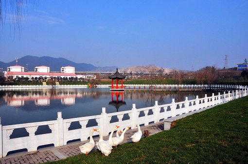 走進中材安徽廠區(qū),首先映入眼簾的是一片人工湖,波光粼粼的湖面上,不斷有魚兒躍起,野鴨和鵝兒在暢游……