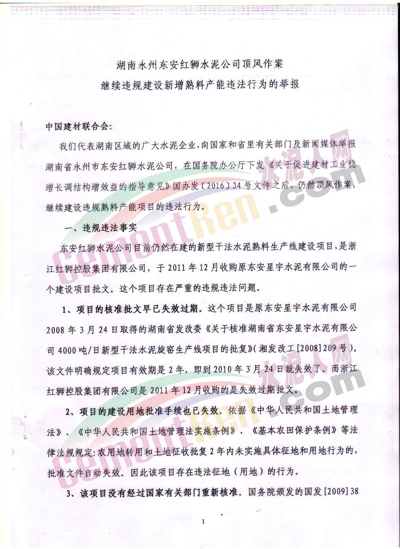 水泥產(chǎn)能嚴(yán)重過剩已是中國水泥行業(yè)不爭的事實(shí)。盡管中央三令五申“嚴(yán)禁建設(shè)新增產(chǎn)能項(xiàng)目”,但依舊有部分水泥企業(yè)屢次越界,觸碰產(chǎn)能紅線。近日,有人向水泥人網(wǎng)爆料,湖南永州東安紅獅水泥公司頂風(fēng)作案,繼續(xù)違規(guī)建設(shè)新增熟料產(chǎn)能。舉報材料如下: