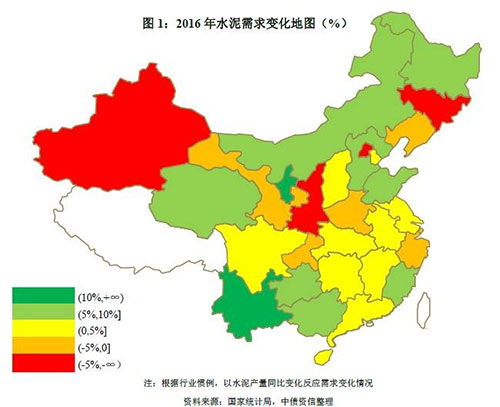 2016年在房地產(chǎn)明顯回暖及基建較好支撐疊加影響下水泥需求回暖,全年水泥需求同比增長(zhǎng)2.5%。分區(qū)域看,基建投資帶動(dòng)下西南地區(qū)云南水泥需求漲幅居全國(guó)首位,達(dá)17.80%,而得益于京津冀一體化戰(zhàn)略背景下房地產(chǎn)開(kāi)發(fā)投資快速增長(zhǎng),華北地區(qū)河北水泥需求同比增長(zhǎng)9%。西北地區(qū)固定資產(chǎn)投資在前期持續(xù)高增長(zhǎng)后急速回調(diào),陜西、新疆需求下降較為明顯;東北地區(qū)受房地產(chǎn)投資乏力影響,遼寧、吉林水泥需求下降;華東長(zhǎng)三角區(qū)域基礎(chǔ)設(shè)施較為完善、城鎮(zhèn)化水平相對(duì)較高,基建投資增長(zhǎng)空間不大,2016年浙江水泥需求亦有所下調(diào)。