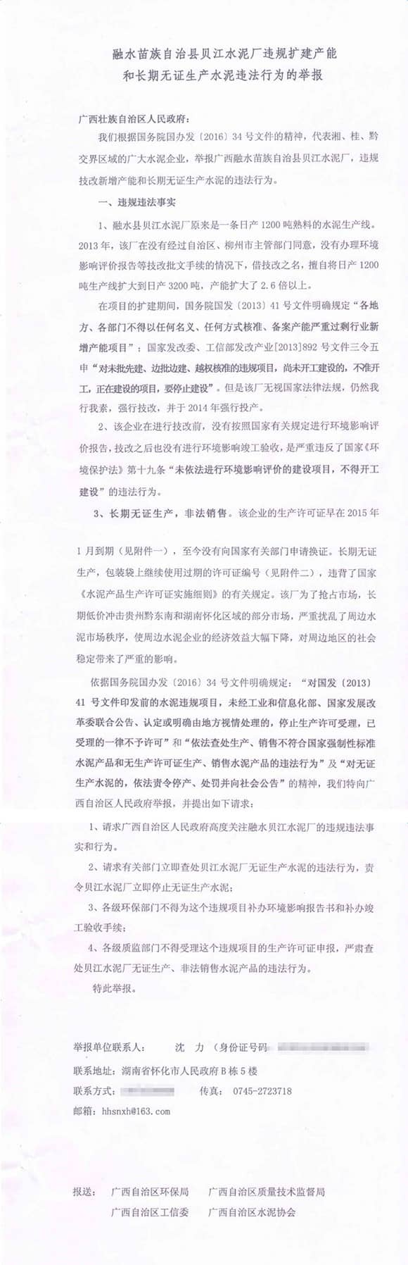 近日,湖南懷化市水泥協(xié)會聯(lián)合部分水泥企業(yè)向中國建筑材料聯(lián)合會提交的舉報材料稱,廣西融水苗族自治縣貝江水泥廠,涉嫌違規(guī)技改新增產(chǎn)能和長期無證生產(chǎn)水泥。