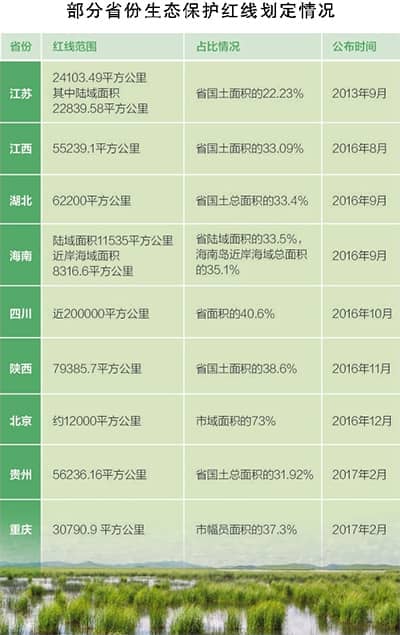 多數(shù)省份生態(tài)紅線保護區(qū)域面積占其轄區(qū)面積的三成以上,并配以嚴格的懲罰問責機制