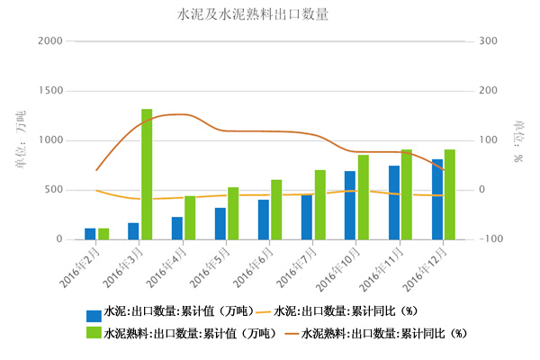據(jù)有關數(shù)據(jù)顯示,2016年我國水泥出口數(shù)量為814.63萬噸,同比2015年減少了11.4%,水泥熟料2016年共出口921.23萬噸,累計同比增長了40.5%。