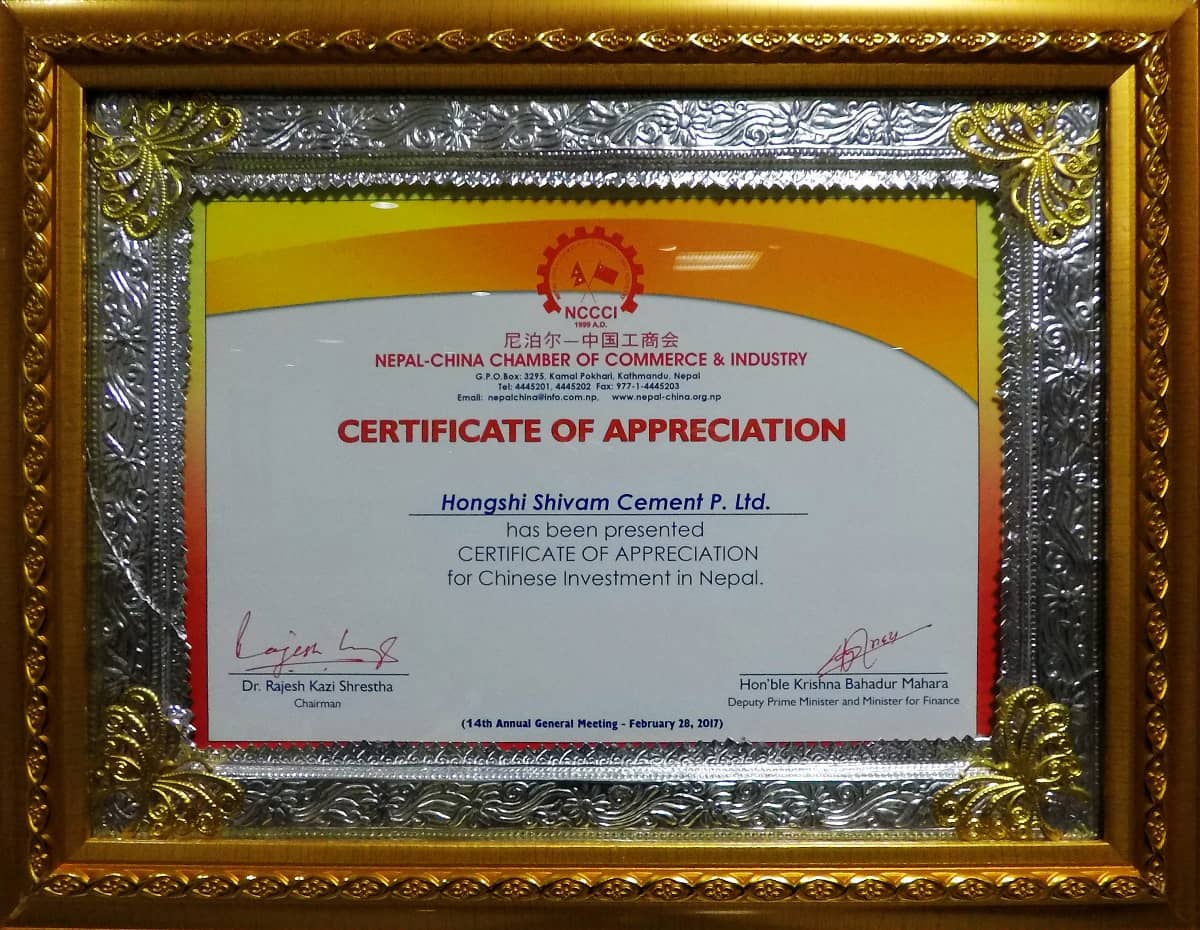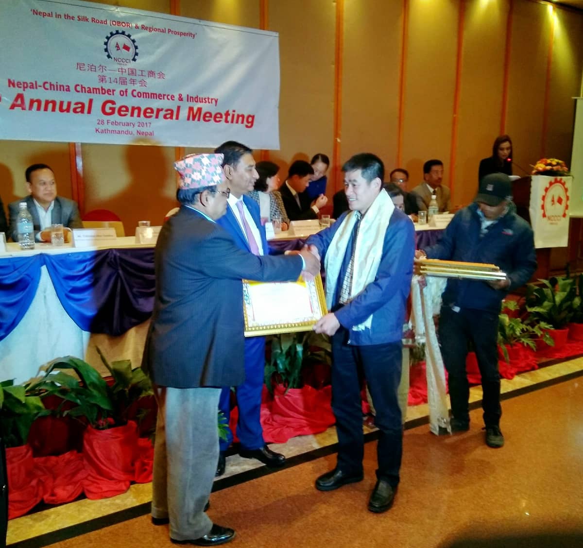 會(huì)上,尼中工商會(huì)向兩國貿(mào)易促進(jìn)、旅游發(fā)展、投資開發(fā)三大領(lǐng)域的貢獻(xiàn)方頒發(fā)了榮譽(yù)獎(jiǎng)。尼泊爾紅獅希望水泥公司獲得了投資開發(fā)領(lǐng)域的榮譽(yù)獎(jiǎng)。