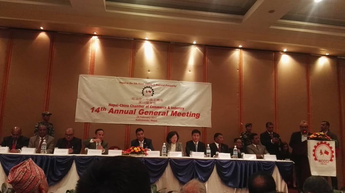 當(dāng)天的年會(huì),尼泊爾副總理兼財(cái)政部長(zhǎng)馬哈拉、中國駐尼泊爾大使于紅、尼中工商會(huì)主席拉杰希.施雷斯塔及尼中工商會(huì)會(huì)員約150人出席會(huì)議。