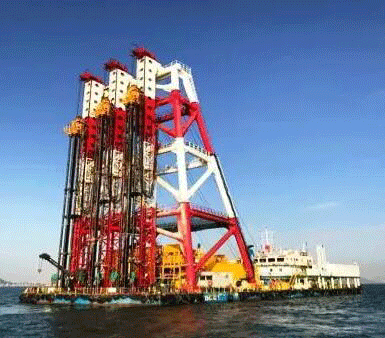 “CCCC DCM1”施工船為國內(nèi)首艘深層水泥拌合船,也是第一艘進(jìn)入3204標(biāo)施工現(xiàn)場(chǎng)的DCM船。該船全長60米,寬26米,型深4.1米,樁架高度48.6米,在國內(nèi)首次采用三組處理機(jī)裝置。DCM船一次處理面積可達(dá)13.92 平方米,最大處理深度可達(dá)水面下35米,配備了吃水儀、水深計(jì)、料位計(jì)、GPS等一系列先進(jìn)的自動(dòng)檢測(cè)儀器,其施工管理控制系統(tǒng)具有高度的自動(dòng)化性能,能夠?qū)崿F(xiàn)一鍵式制樁,并可以手動(dòng)、自動(dòng)施工任意轉(zhuǎn)換,自動(dòng)化程度達(dá)到了世界領(lǐng)先水平。截至目前,施工船已沉樁15根,滿足施工進(jìn)度要求。