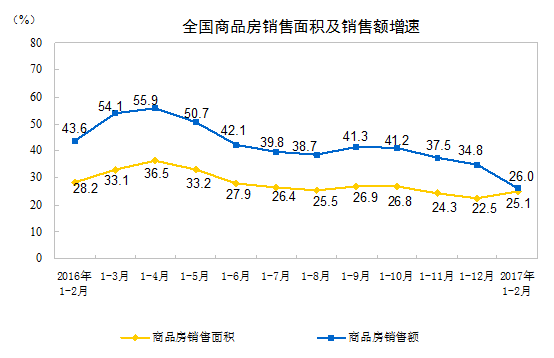 今日國家統(tǒng)計局發(fā)布了2017年1-2月份全國房地產(chǎn)開發(fā)投資和銷售情況,具體內(nèi)容如下: