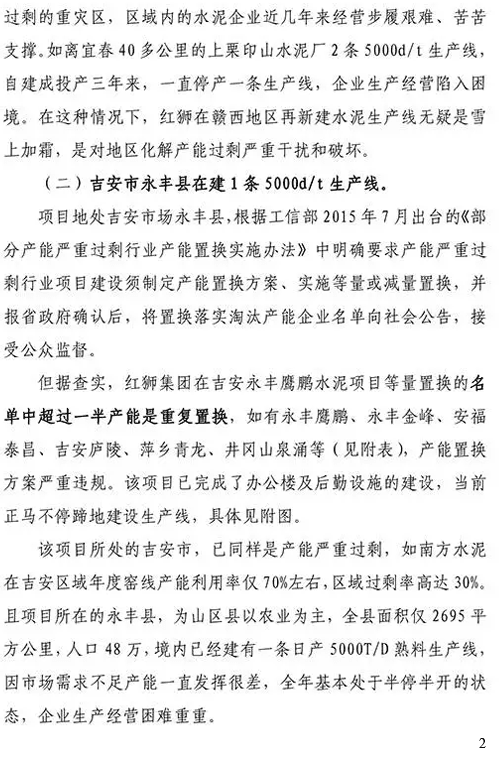 關(guān)于紅獅水泥公司在江西宜春、永豐二地涉嫌違規(guī)新建水泥熟料生產(chǎn)線的舉報材料如下: