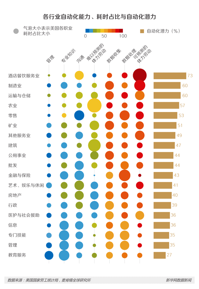 自二月以來(lái),全國(guó)各地招聘如火如荼。人力市場(chǎng)雖供需兩熱,但就業(yè)壓力大、人力成本高、招工難、就業(yè)難的矛盾依舊不容忽視。除了經(jīng)濟(jì)發(fā)展的客觀因素外,人工智能低調(diào) “入侵”的威力已開始顯現(xiàn),部分自動(dòng)化潛力較大行業(yè)的就業(yè)人數(shù)已經(jīng)出現(xiàn)下降趨勢(shì)。
