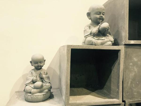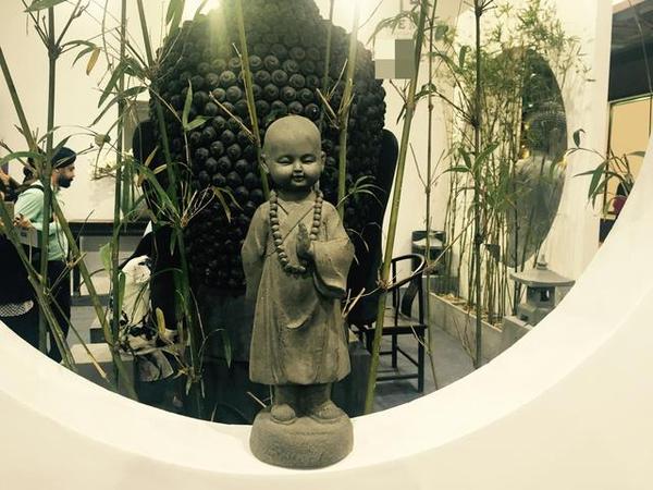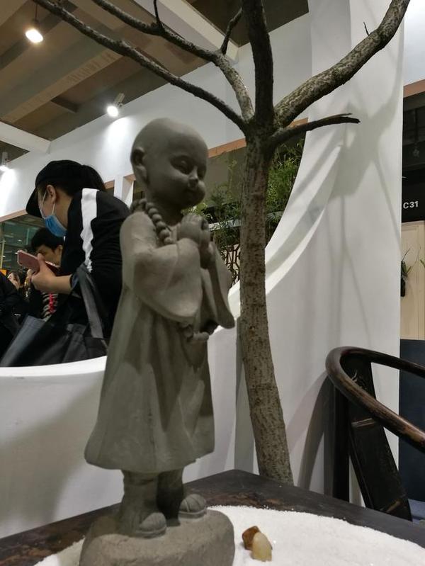 敲木魚的小僧童,造型是不是別有一番滋味。工作人員介紹,因水泥的可塑性,它可以任意制作出各色形狀。但根本上還是源于設(shè)計(jì)師的創(chuàng)作理念,這種僧侶類水泥工藝品目前在國(guó)內(nèi)還是少有。