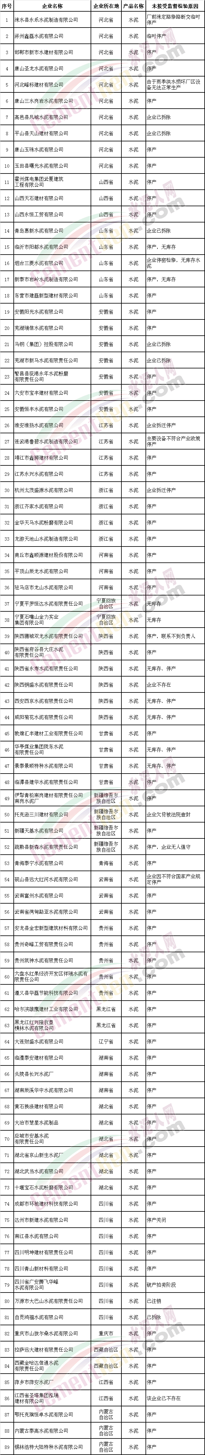 圖2 未接受監(jiān)督檢驗(yàn)水泥企業(yè)名單
