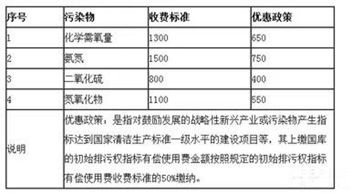 福建省初始排污權(quán)指標(biāo)有償使用費(fèi)收費(fèi)標(biāo)準(zhǔn)