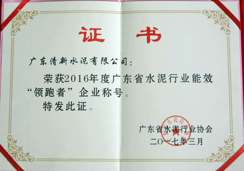 2017年3月22日,憑借可比水泥綜合能耗最低的突出優(yōu)勢,清新海螺從170家參與能耗對標(biāo)水泥企業(yè)中脫穎而出,繼2015年后,公司再次獲得年廣東省水泥行業(yè)能效“領(lǐng)跑者”企業(yè)稱號,成為2016年度廣東省水泥)行業(yè)唯一獲此殊榮的企業(yè)。