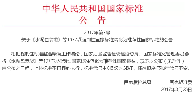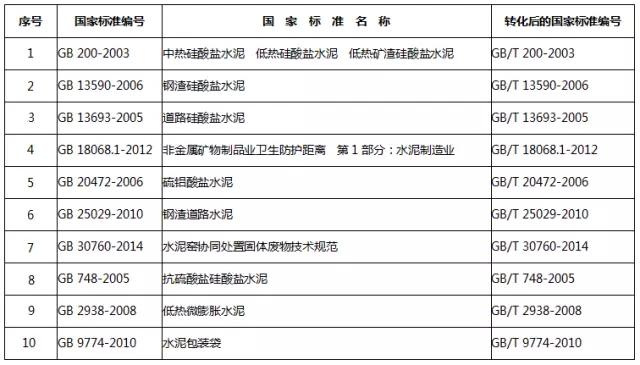 水泥行業(yè)強(qiáng)制性轉(zhuǎn)化為推薦性國家標(biāo)準(zhǔn)