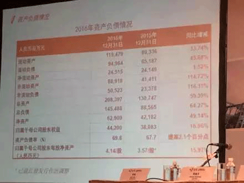 金隅冀東戰(zhàn)略重組后,金隅股份到2016年底總資產(chǎn)同比增加了超過一半,達(dá)到2083.9億元。