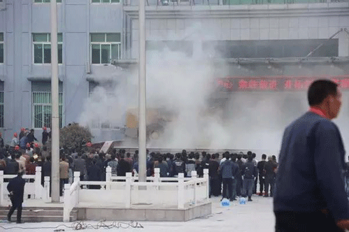 推土機(jī)撞擊辦公樓現(xiàn)場(chǎng)