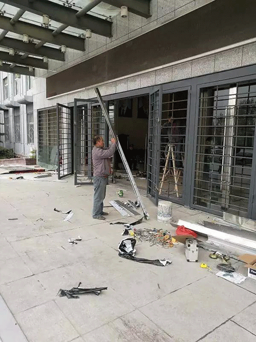 4月10日,工人正在對(duì)損壞的大門進(jìn)行修復(fù)