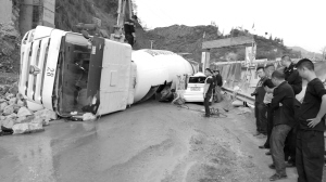 昨日(4月18日)下午3點(diǎn)鐘左右,巫山龍門(mén)大橋往該縣騾坪鎮(zhèn)方向約300米處發(fā)發(fā)生一起慘烈車(chē)禍,一輛側(cè)翻的水泥罐車(chē)將一輛寶馬轎車(chē)的車(chē)頭壓扁,寶馬車(chē)司機(jī)當(dāng)場(chǎng)身亡,罐車(chē)司機(jī)受傷。