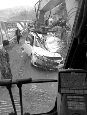 救援人員趕到現(xiàn)場(chǎng)后,破拆轎車(chē)后發(fā)現(xiàn)轎車(chē)變形嚴(yán)重,無(wú)法實(shí)施救援,于是有關(guān)部門(mén)又調(diào)來(lái)一輛吊車(chē),將罐車(chē)吊起。