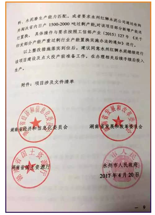 圖:關(guān)于永州紅獅水泥項目處理意見