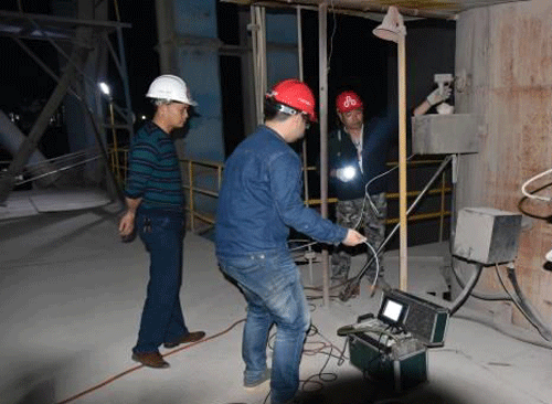 4月30日20點(diǎn)55分,環(huán)保執(zhí)法人員開(kāi)始用監(jiān)測(cè)設(shè)備對(duì)窯尾進(jìn)行實(shí)測(cè)。