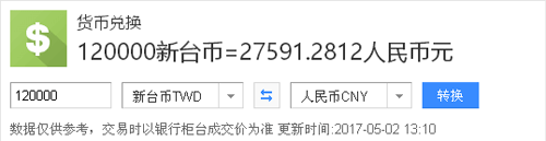 12萬臺(tái)幣兌換人民幣約27591元