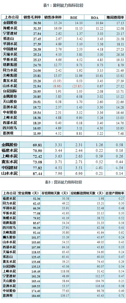 綜合比較,華潤水泥、華新水泥、海螺水泥、塔牌集團的整體營運能力排位靠前,不僅營業(yè)周期較短,總資產的周轉效率也比較高;青松建化(600425,股吧)、中國建材、天山股份(000877,股吧)、冀東水泥(000401,股吧)在營業(yè)周期和資產周轉方面的營運能力均有待提升。