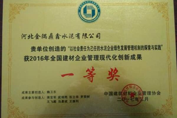 以質量贏信譽,以服務贏市場。通過質量制度的保證、先進工藝的引進、優(yōu)良的售后服務等,不斷提高品牌的知名度、美譽度,“鼎鑫”牌水泥先后獲得了“河北省名牌產(chǎn)品”、“河北省著名商標”等多項殊榮。并成為水泥行業(yè)率先通過產(chǎn)品、質量、安全、環(huán)境、能源、測量六位一體管理體系認證的企業(yè),是石家莊市工業(yè)50強和鹿泉市工業(yè)20強企業(yè)之一,并入圍“國家重點支持60家水泥工業(yè)結構調整大型企業(yè)”名單。被國家發(fā)改委、工信部、環(huán)保部以及水泥協(xié)會等聯(lián)合評定為全國5000家水泥企業(yè)中的16家能效領跑企業(yè)之一,也是全國大型集團環(huán)保標桿企業(yè)。公司還是石家莊市唯一一家獲得第三屆石家莊市政府質量獎組織獎和個人獎雙項獎項的單位,也是建材行業(yè)唯一一家獲得中國質量協(xié)會2016年全國實施卓越績效模式先進企業(yè)稱號的單位,榮獲2016年度河北省推行卓越績效模式優(yōu)秀企業(yè)稱號。