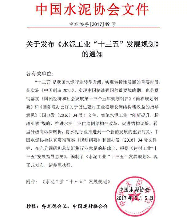 “十三五”是我國建材行業(yè)轉(zhuǎn)型升級,實現(xiàn)轉(zhuǎn)折性發(fā)展的重要階段,是實施《中國制造2025》、實現(xiàn)中國制造強(qiáng)國的重要戰(zhàn)略期,也是貫徹落實我國《國民經(jīng)濟(jì)和社會發(fā)展第十三個五年規(guī)劃綱要》和《國務(wù)院辦公廳關(guān)于促進(jìn)建材工業(yè)穩(wěn)增長調(diào)結(jié)構(gòu)增效益的指導(dǎo)意見》(國辦發(fā)〔2016〕34號)文件,實施水泥工業(yè) “創(chuàng)新提升,超越引領(lǐng)”戰(zhàn)略,推進(jìn)水泥工業(yè)供給側(cè)結(jié)構(gòu)性改革,促進(jìn)結(jié)構(gòu)調(diào)整、轉(zhuǎn)型升級向縱深轉(zhuǎn)折,將水泥行業(yè)推進(jìn)到一個新的發(fā)展的重要時期,中國水泥協(xié)會在總結(jié)匯集全行業(yè)的意見基礎(chǔ)上,根據(jù)《建材工業(yè)“十三五”發(fā)展指導(dǎo)意見》(以下簡稱《意見》),特制訂了《水泥工業(yè)“十三五”發(fā)展規(guī)劃》(簡稱《規(guī)劃》)?!兑?guī)劃》分析了水泥工業(yè)在新時期所處的時代特征和面臨的發(fā)展的有利條件與環(huán)境及新的需求,指出了存在的主要問題和困難,明確了“十三五”水泥行業(yè)的發(fā)展方向和思路、發(fā)展的主要目標(biāo)、行業(yè)結(jié)構(gòu)調(diào)整的重點、實施的重點工程,以期成為引領(lǐng)水泥工業(yè)轉(zhuǎn)型發(fā)展的指導(dǎo)和作為政府部門決策及制定相關(guān)政策的重要參考。
