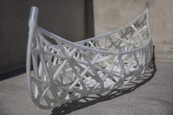 SkelETHon水泥輕舟重達(dá)114千克,該長(zhǎng)四米的船只采用了多種制作技術(shù)制作而成。對(duì)于設(shè)計(jì)而言,DBT提供了自由模板軟件來(lái)制作輕舟錯(cuò)綜復(fù)雜的設(shè)計(jì)和結(jié)構(gòu)。