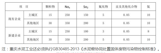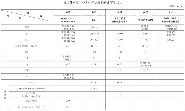 2、重慶頒布的《水泥工業(yè)大氣污染物排放標(biāo)準(zhǔn)》顆粒物、Nox、So2排放控制已達(dá)到國(guó)際上歐盟、德國(guó)的先進(jìn)控制水平(詳見下表)。
