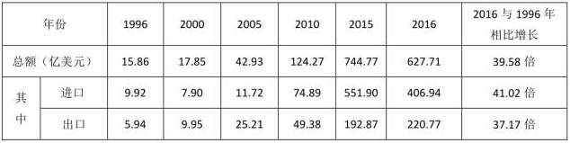4、2016年進(jìn)出口總額是1996年的39.58倍。