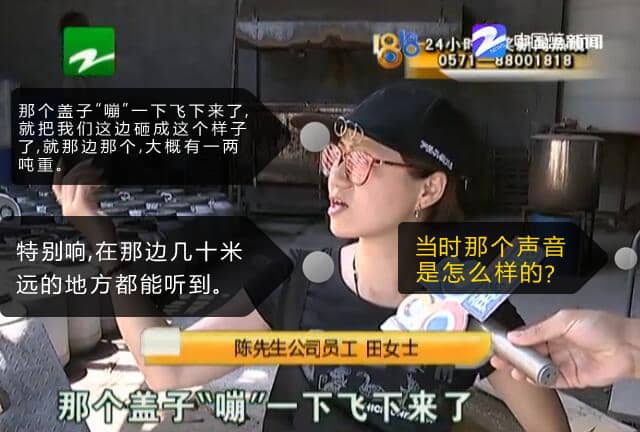 田女士后來得知,蓋子是從隔壁一家工廠的水泥攪拌罐上飛來的。