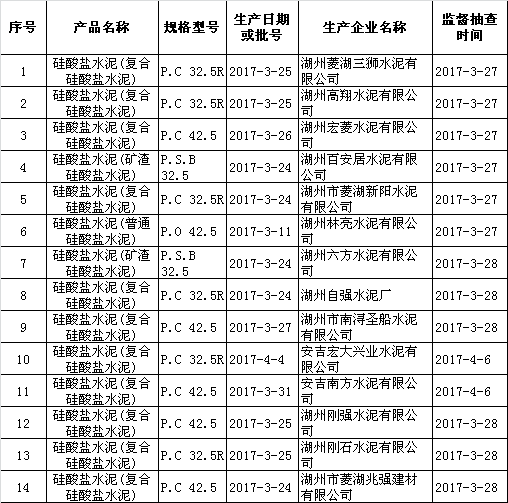 2017年水泥產(chǎn)品監(jiān)督抽查結(jié)果匯總表