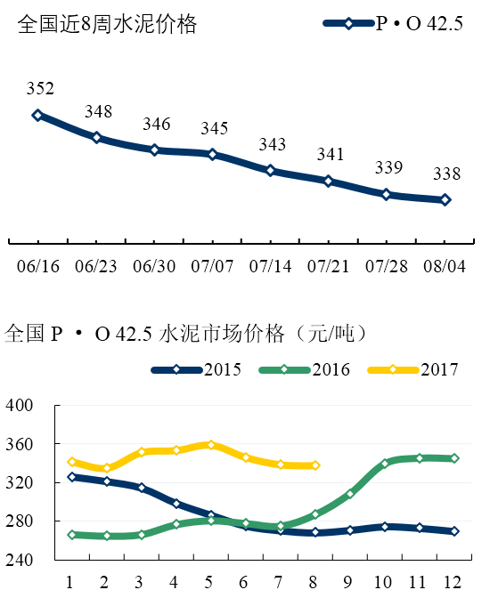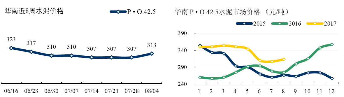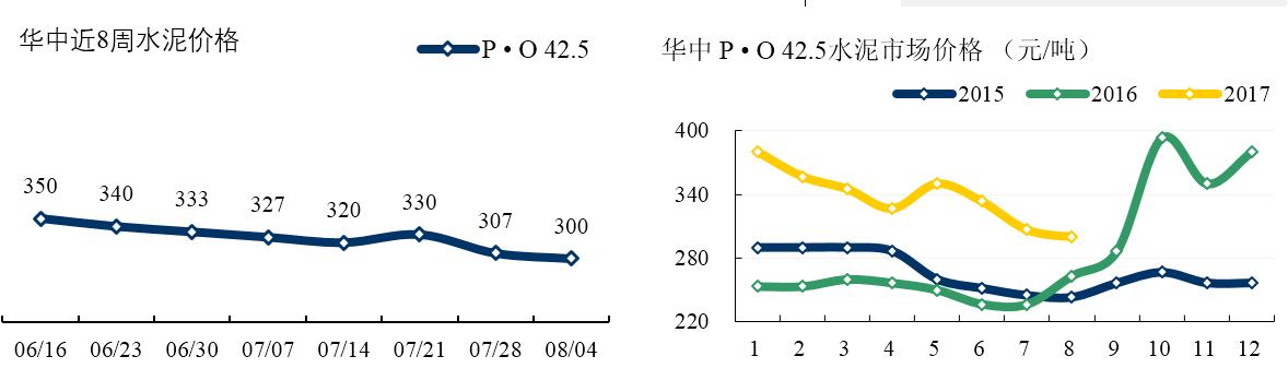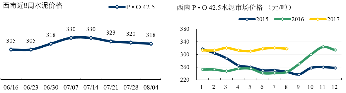 西南: 四川受環(huán)保檢查影響,成都及周邊部分房地產(chǎn)工地及攪拌站停產(chǎn)。但各企業(yè)并未強(qiáng)制停產(chǎn),目前水泥供應(yīng)尚較充裕。重慶雖然高溫天氣持續(xù),但主導(dǎo)企業(yè)出貨仍在正常水平 7-8 成,近期企業(yè)穩(wěn)價(jià)意圖十分明顯。本周雨水天氣開(kāi)始減少,昆明及周邊廠家水泥出貨小幅回升。