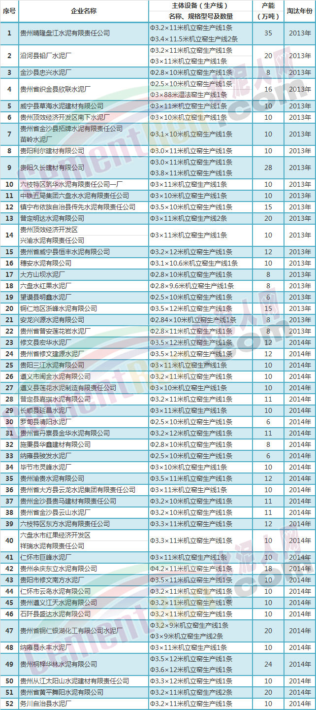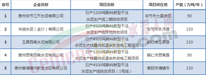 貴州省停止建設的水泥項目名單