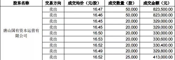 唐山國資公司 2017 年 7 月 7 日買賣公司股票具體情況如下: