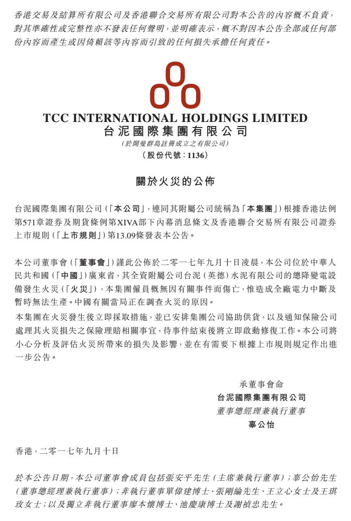 至于停工與火災(zāi)損失,臺(tái)泥表示,已通知保險(xiǎn)公司處理其火災(zāi)損失相關(guān)之保險(xiǎn)理賠相關(guān)事宜,而財(cái)務(wù)業(yè)務(wù)損失金額及修復(fù)時(shí)間目前尚待統(tǒng)計(jì)及評(píng)估。
