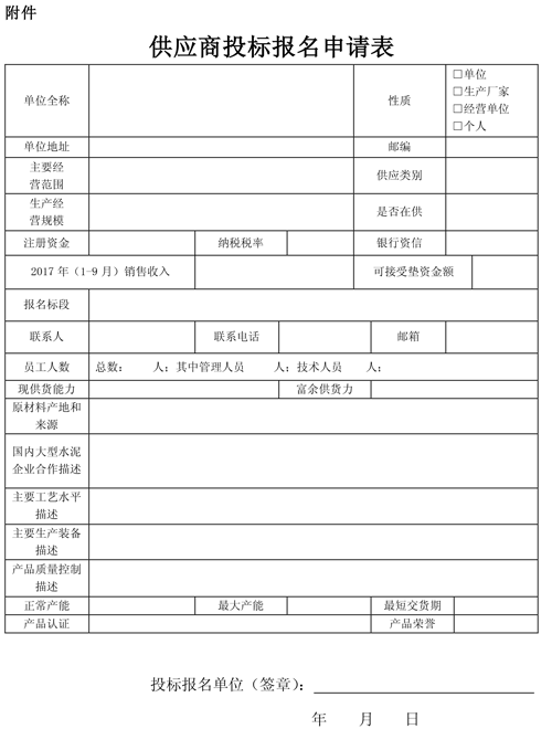 2、貴州西南水泥邀請,并通過資質(zhì)預(yù)審合格的供應(yīng)商方能參加招標。