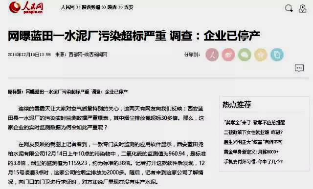 而同屬于堯柏水泥集團(tuán)另一子公司西安藍(lán)田堯柏水泥有限公司也曾被爆出環(huán)保污染問題: