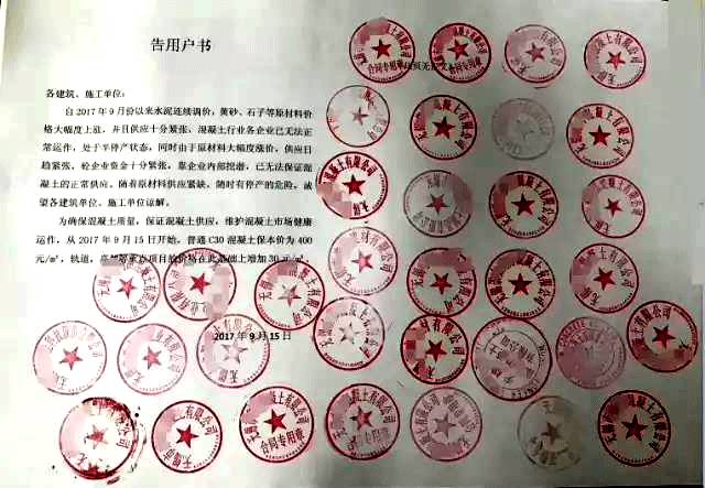 近日,江蘇大部地區(qū)混凝土價(jià)格出現(xiàn)較大幅度上漲,其中個(gè)別地區(qū)8-9月份最高上漲50元/方,蘇州、泰州、常州、鹽城、徐州、連云港等地商砼銷價(jià)平均上漲30元/方左右。部分市場(chǎng)C30泵送價(jià)格突破400元/方大關(guān)!