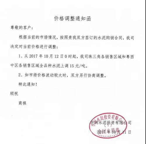 調(diào)價(jià)通知原文如下:
