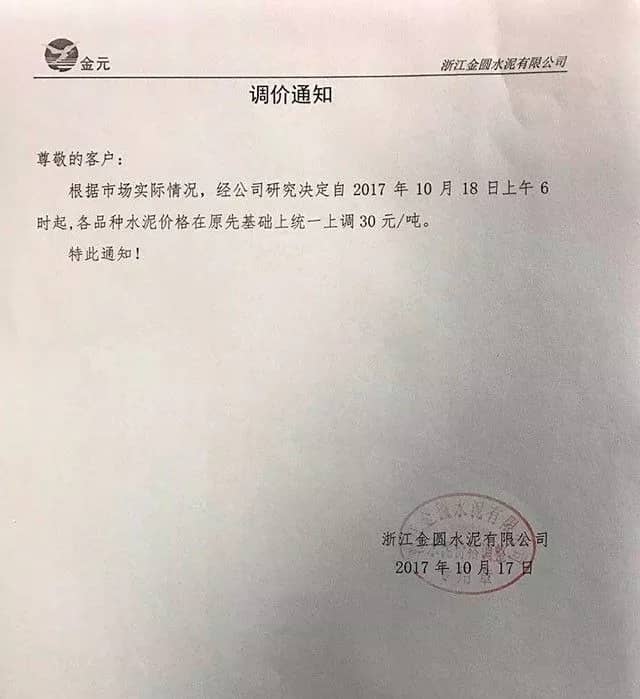 據(jù)悉,華東地區(qū)水泥除以上地區(qū)外,其他地區(qū)水泥價格也將上調(diào)。預(yù)計,年內(nèi)江浙滬水泥價格還將上調(diào)2-3輪。以下為部分企業(yè)調(diào)價通知:
