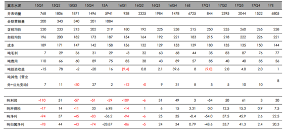 冀東水泥盈利測(cè)算