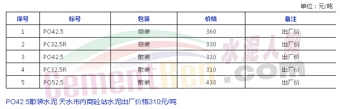 水泥人網(wǎng)29日消息,中建材下屬企業(yè)天水中材水泥有限責任公司自今日零時起,對各品種水泥出廠價格進行調(diào)整。調(diào)整后各品種水泥執(zhí)行價格如下: