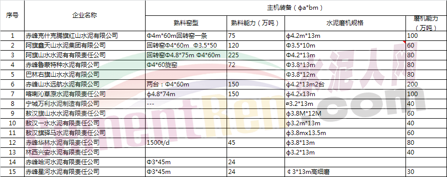 赤峰市水泥企業(yè)