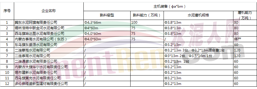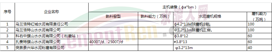 據(jù)了解蒙東四盟特指通遼市以北地區(qū),包括通遼、赤峰、興安盟、呼倫貝爾、錫林郭勒等地區(qū)。據(jù)了解蒙東地區(qū)靠近東北區(qū)域,有四十余家水泥企業(yè),具體名單如下: