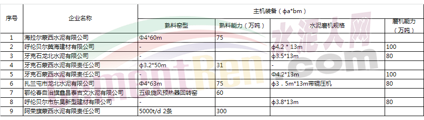 呼倫貝爾水泥企業(yè)