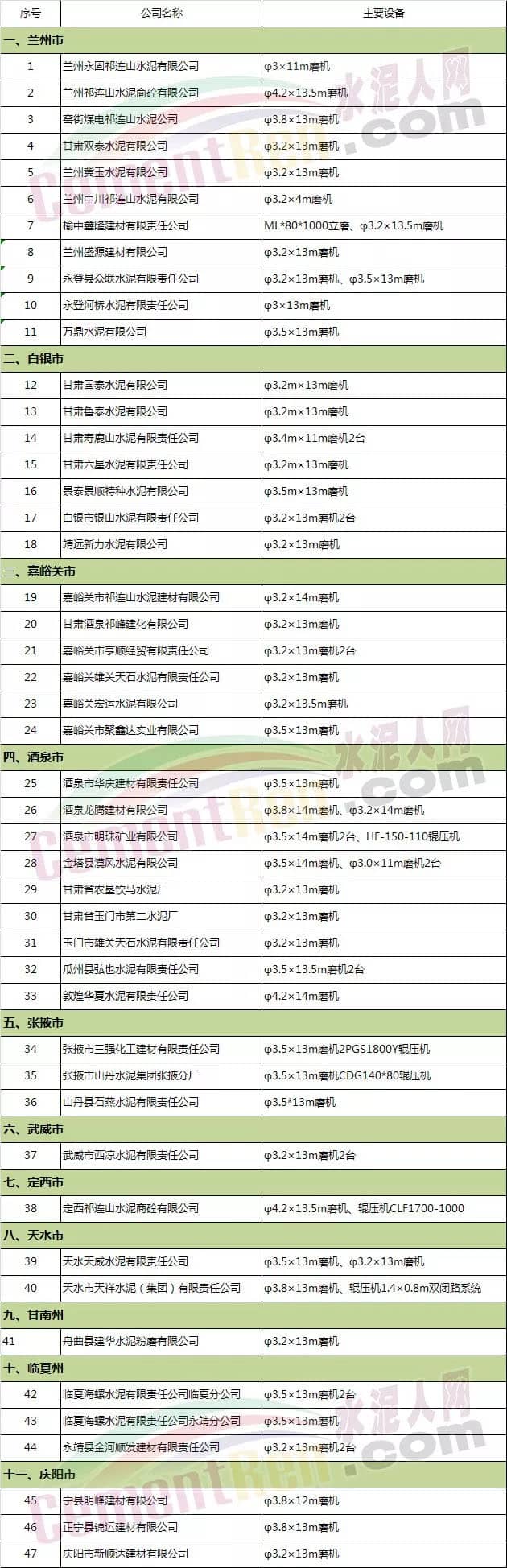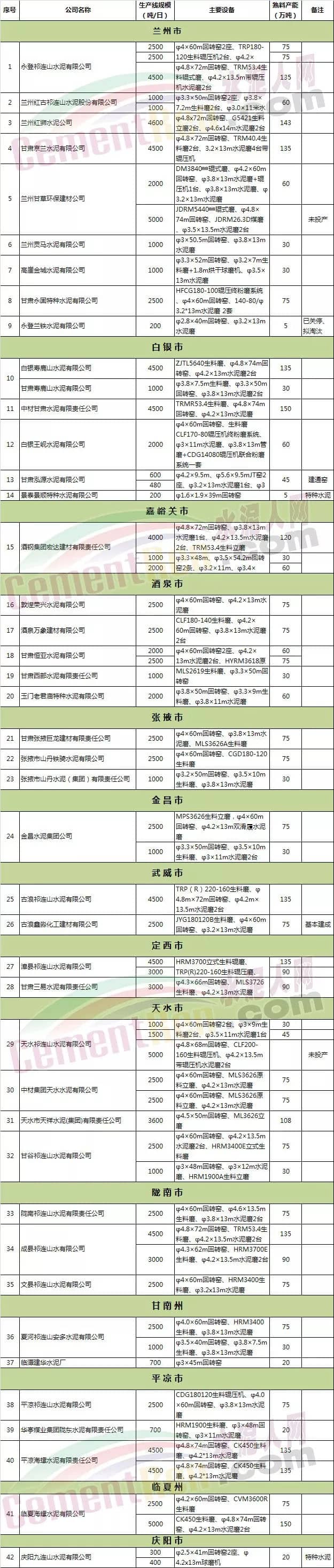 甘肅省水泥粉磨站生產(chǎn)線產(chǎn)能現(xiàn)狀清單