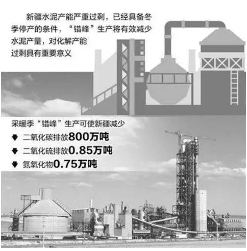 水泥企業(yè)在新疆冬季開展生產(chǎn),比平時高出10%能耗,錯峰生產(chǎn)可規(guī)避高耗能生產(chǎn)期,使水泥企業(yè)全年節(jié)煤10萬噸到15萬噸。停窯期間,可停止用煤100萬噸,減排二氧化碳800萬噸、二氧化硫0.85萬噸,為節(jié)能減排作出貢獻(xiàn)。